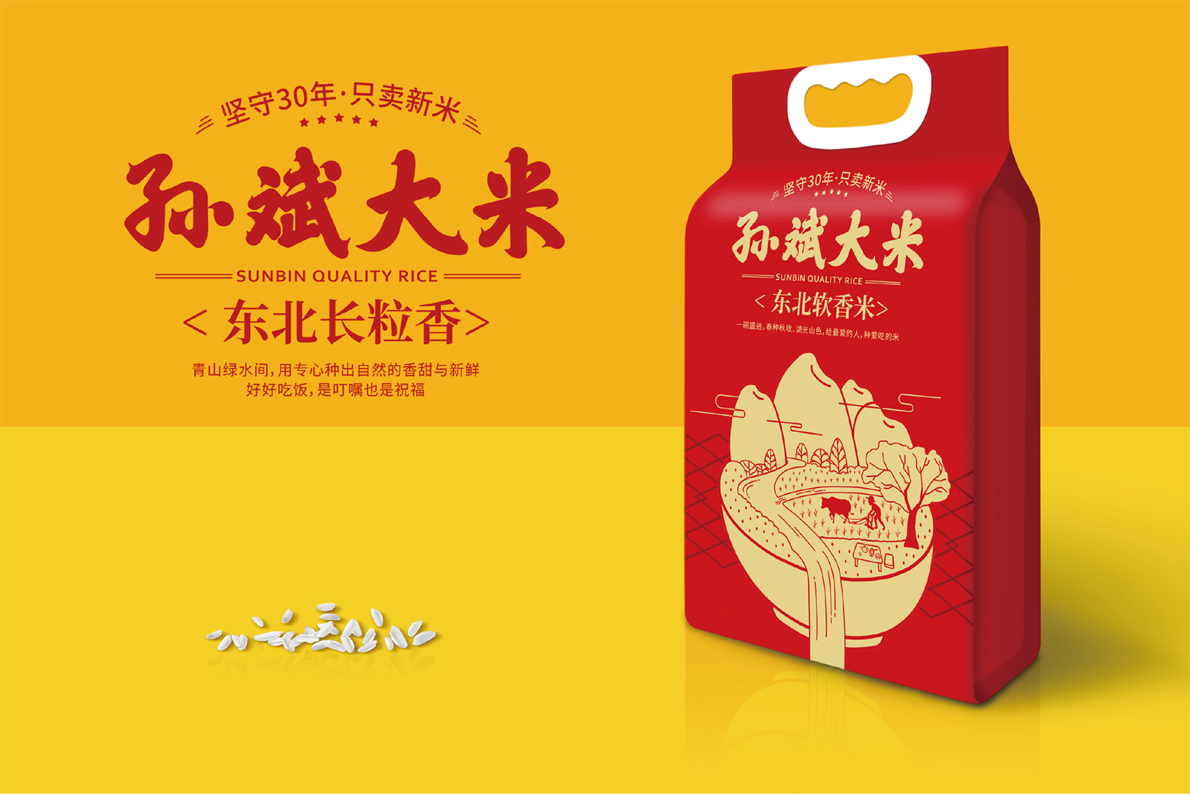 黑龍江孫斌鴻源農(nóng)業(yè)開發(fā)集團(tuán)有限責(zé)任公司成立于2009年3月5日,位于黑龍江省東北部樺南縣。集團(tuán)下轄鴻源種業(yè)、鴻源糧油貿(mào)易和黑龍江寒地雜交水稻工程技術(shù)等多個(gè)公司,注冊(cè)資本6000萬元,年產(chǎn)值1.2億元,是一家集水稻科研、生產(chǎn)、收儲(chǔ)、加工、銷售和服務(wù)于一體的國(guó)家級(jí)產(chǎn)業(yè)化扶貧龍頭企業(yè)。旗下覆蓋多種稻米產(chǎn)品,如鴨稻米、胚芽米、珍珠米等,產(chǎn)品線復(fù)雜,產(chǎn)品種類繁多。 企業(yè)希望通過電商營(yíng)銷,以點(diǎn)帶面將孫斌大米這一品牌植入消費(fèi)者心智,但原有包裝風(fēng)格各異,沒有完整統(tǒng)一的視覺符號(hào)無法傳達(dá)品牌形象,同業(yè)不能讓消費(fèi)者辨識(shí)到品牌,無法達(dá)到品牌集群效應(yīng)。
