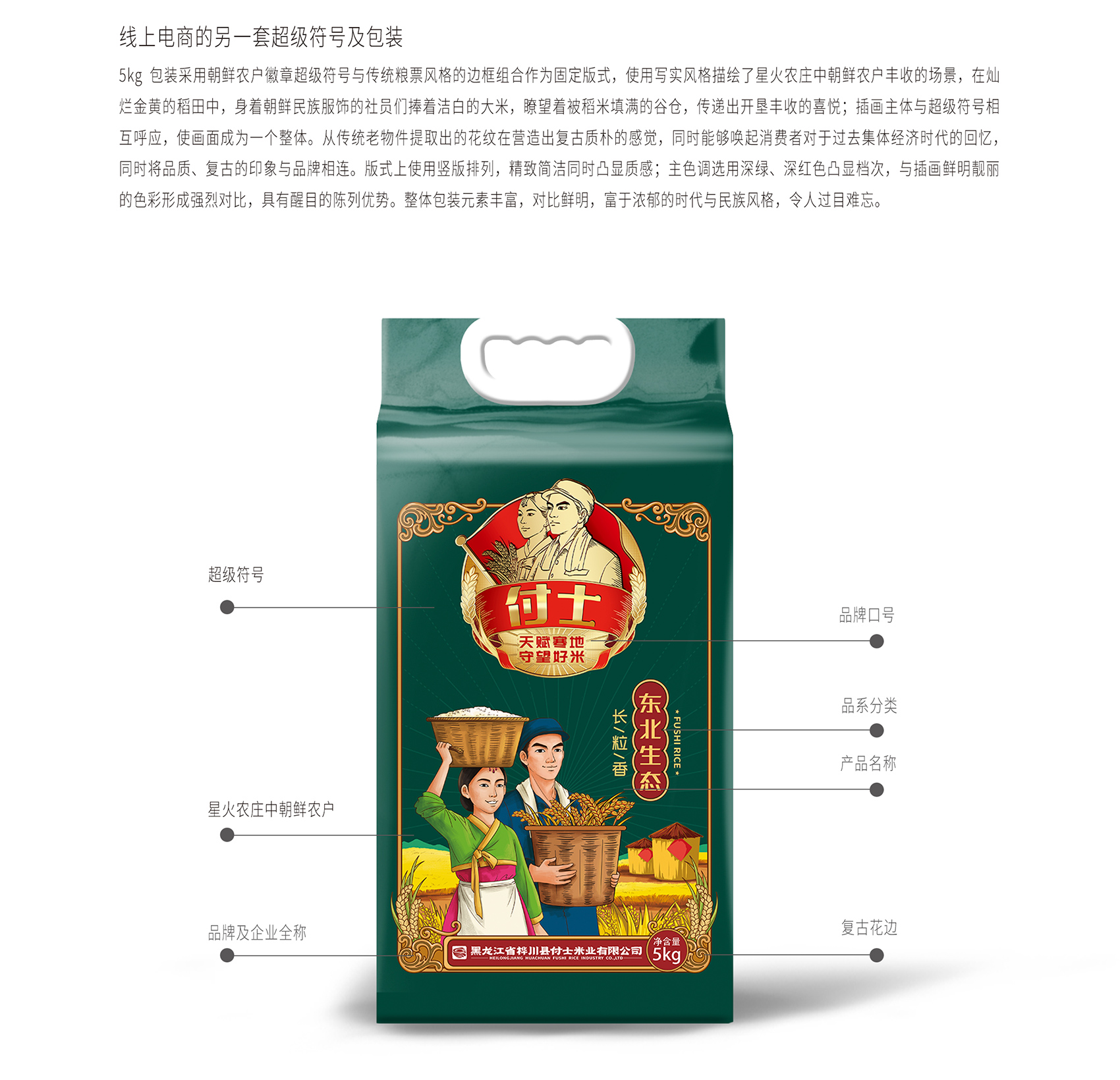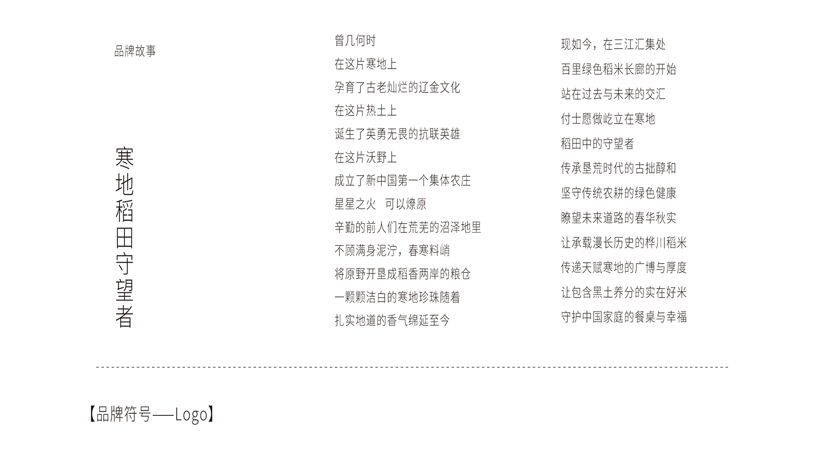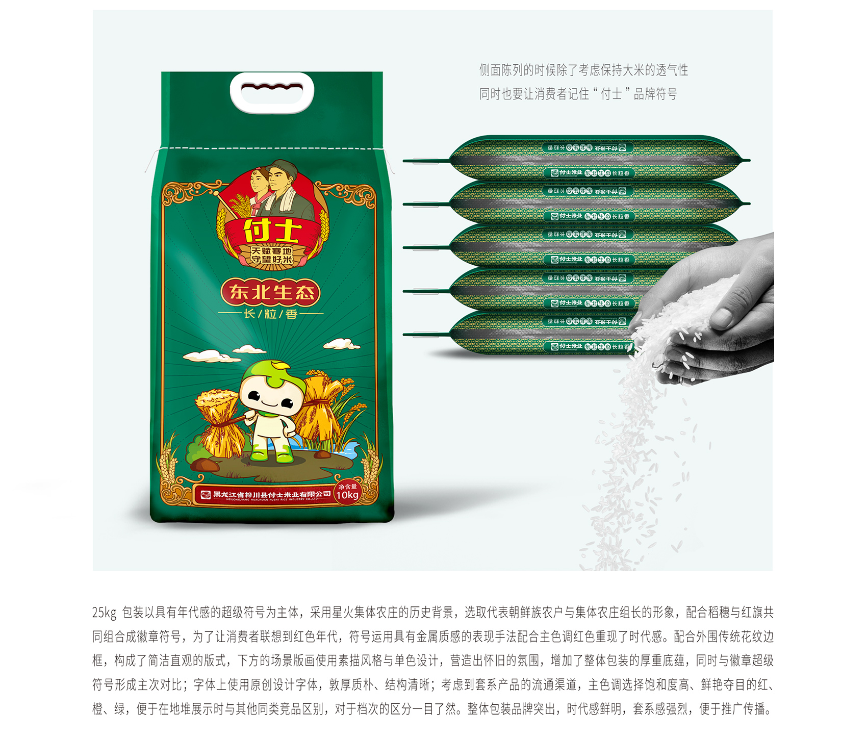 廣闊而復(fù)雜的市場(chǎng)必然產(chǎn)生最為激烈的競(jìng)爭(zhēng),這一點(diǎn)在剛需品上更為明顯,想要在商戰(zhàn)中勝出最根本的就是減低成本,提高利潤(rùn),所有的企業(yè)戰(zhàn)略、品牌定位、品牌設(shè)計(jì)、包裝設(shè)計(jì)、廣告創(chuàng)意等等都是圍繞這個(gè)核心來(lái)進(jìn)行的,所有的力量只有擰成一股繩,才能突破封鎖,這就是“所有事都是一件事”的背后原理。經(jīng)過(guò)實(shí)地考察調(diào)研和多次與企業(yè)深入座談,繽策發(fā)現(xiàn)企業(yè)擁有足夠長(zhǎng)久的歷史和當(dāng)?shù)爻錆M傳奇色彩的集體農(nóng)莊,都是企業(yè)所擁有的品牌資源,需要做的只是將這些材料去粗取精,重新整合變成消費(fèi)者能夠理解并且喜愛(ài)的形式一一落地。繽策從樺川本地水稻種植歷史切入,提煉出“寒地稻米的守望者”這一品牌核心定位,總結(jié)歸納出高緯寒地良心好米的專(zhuān)屬品牌文化,并以此打造出品牌專(zhuān)屬I(mǎi)P,系統(tǒng)化落入包裝及物料中,幫助品牌實(shí)現(xiàn)從戰(zhàn)略到落地全面執(zhí)行。