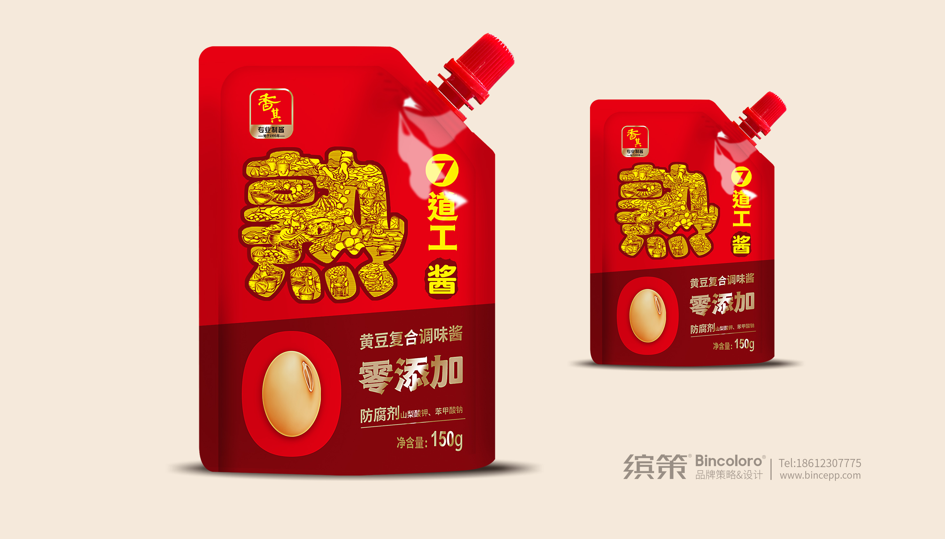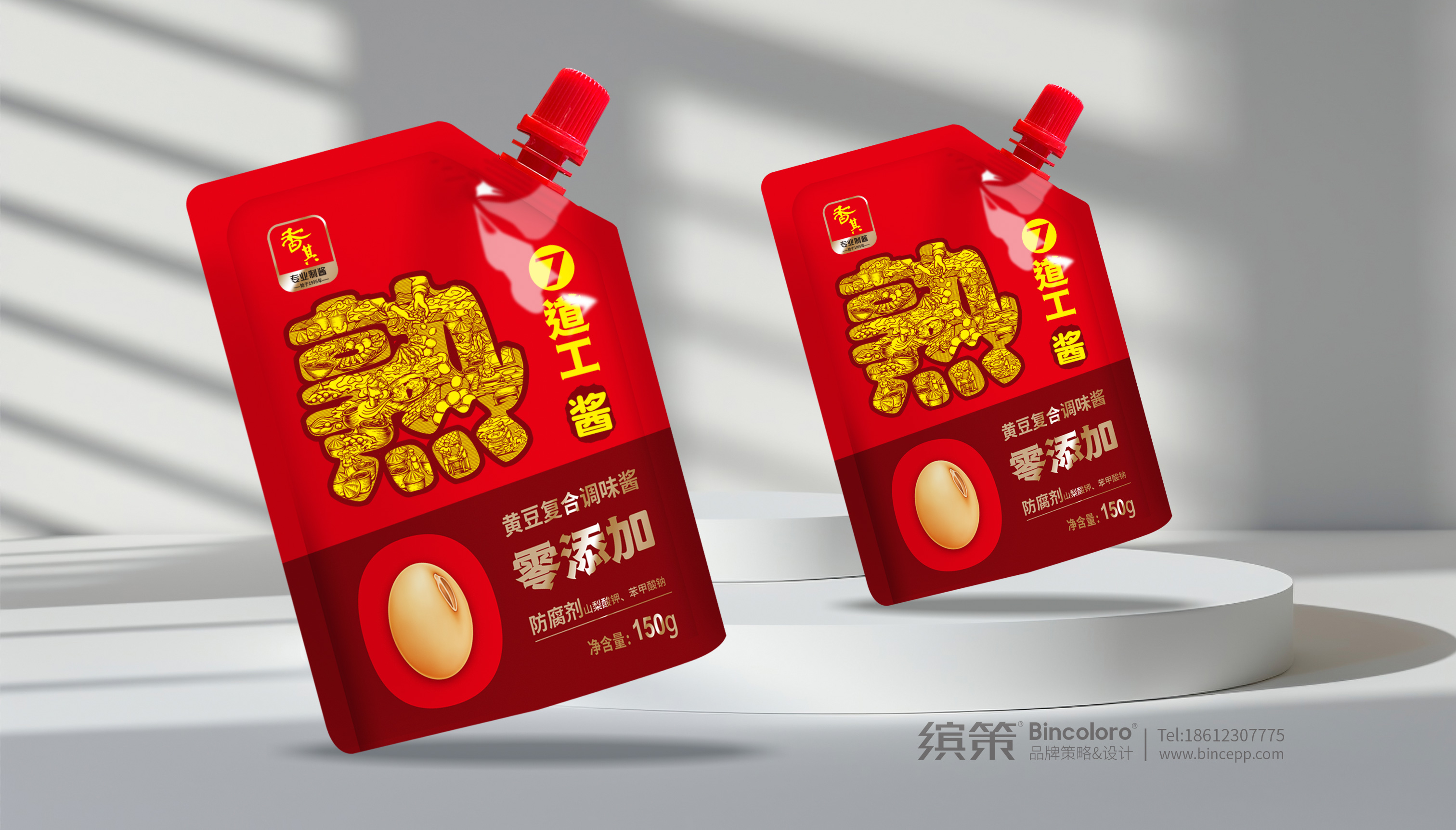 品牌的核心是直指消費(fèi)者心智,指引購買意愿,而最終呈現(xiàn)就是包裝,在最短時(shí)間內(nèi)向?qū)a(chǎn)品賣點(diǎn)呈現(xiàn)出來,并引導(dǎo)消費(fèi)者進(jìn)行記憶與購買。從認(rèn)知-記憶-認(rèn)同-復(fù)購的行為模式上來說,超級符號能最有效的吸引眼球,將核心概念植入消費(fèi)者心智,同時(shí)也提供了購買依據(jù),所以繽策將"熟"字提煉出來,結(jié)合傳統(tǒng)七道工藝與零添加的專屬特點(diǎn),共同打造獨(dú)屬于香其醬的熟醬符號。幫助品牌重塑消費(fèi)者心智。