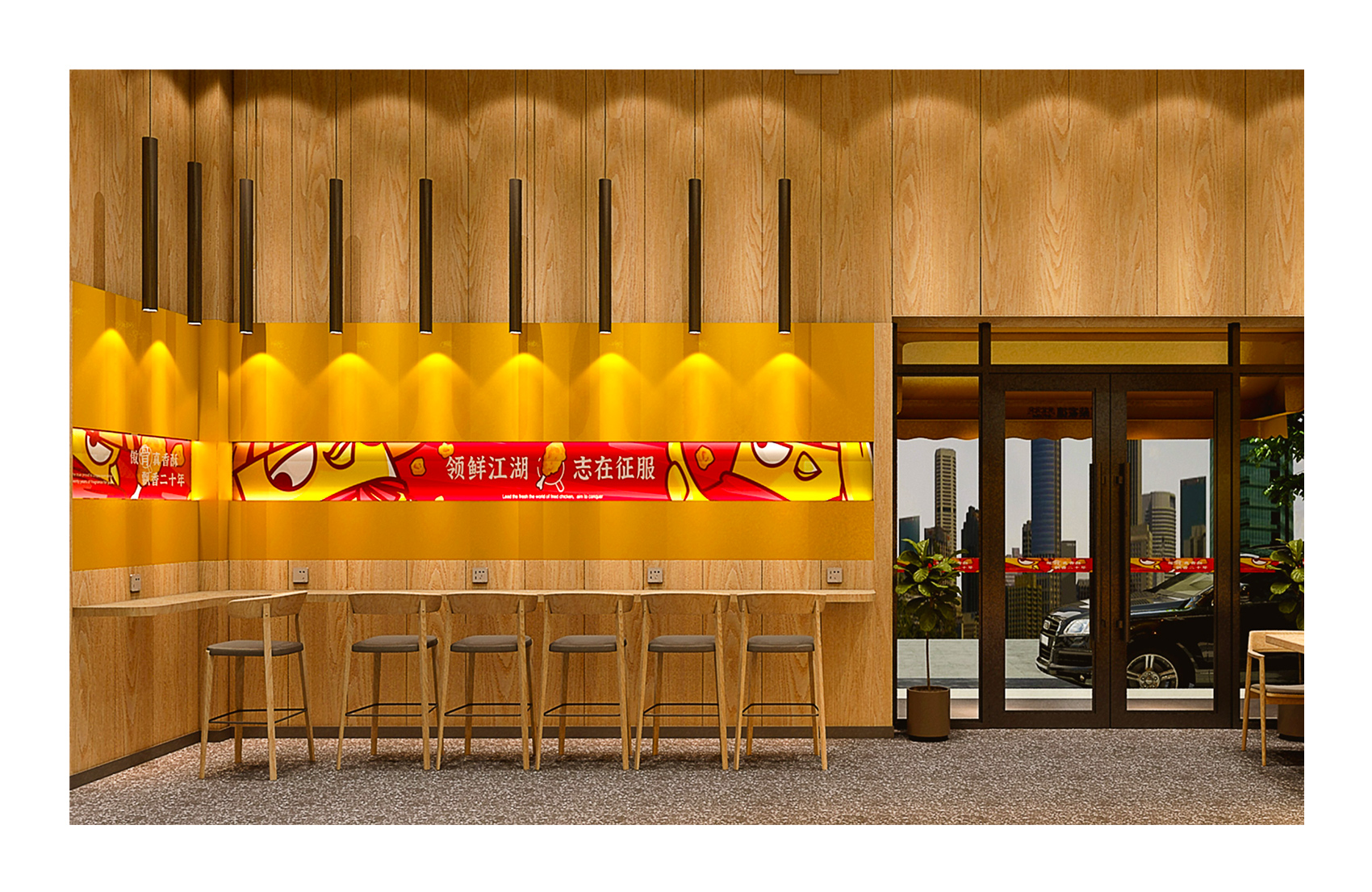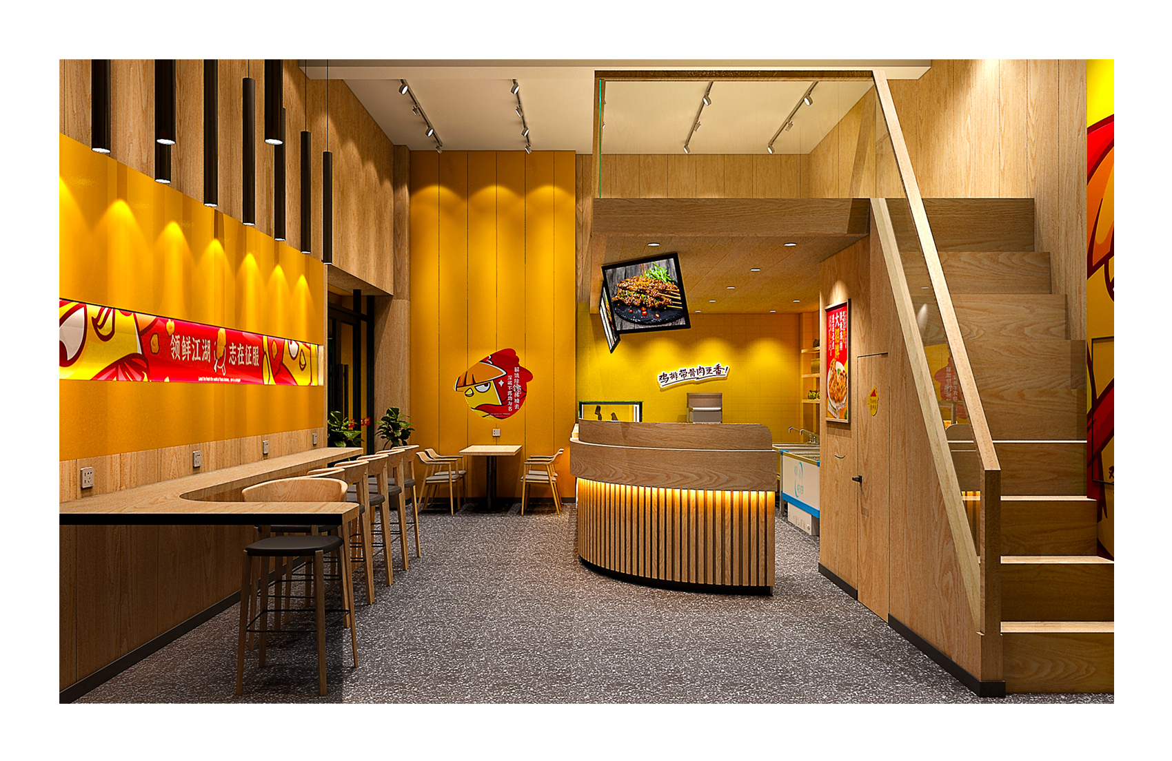 品牌所屬品類為小吃類,其中與其他競品的區(qū)別是產(chǎn)品帶有骨頭,這一點(diǎn)讓其目標(biāo)客群被天然劃分即擁有大量空閑時間,牙口好的年輕群體,這些千禧一代從小就生活在互聯(lián)網(wǎng)之中,個性鮮明、注重體驗(yàn),偏好娛樂與社交的話題,對亞文化如動漫、游戲興趣更大,反映在消費(fèi)觀之上,體現(xiàn)在更加注重品牌的趣味性,所以對于小吃的選擇不僅僅局限在產(chǎn)品本身的口味,更多的是是否能夠新潮時髦,方便打卡,從這一點(diǎn)入手繽策將品牌的所屬品類作為突破口,以時下受消費(fèi)者喜愛的IP形象打造品牌形象并以此為延展,垂直化落入產(chǎn)品包裝與店面空間之中,讓品牌已完整的體系展現(xiàn)在消費(fèi)者面前,目前品牌總部已裝修完成,店面進(jìn)入運(yùn)營階段。