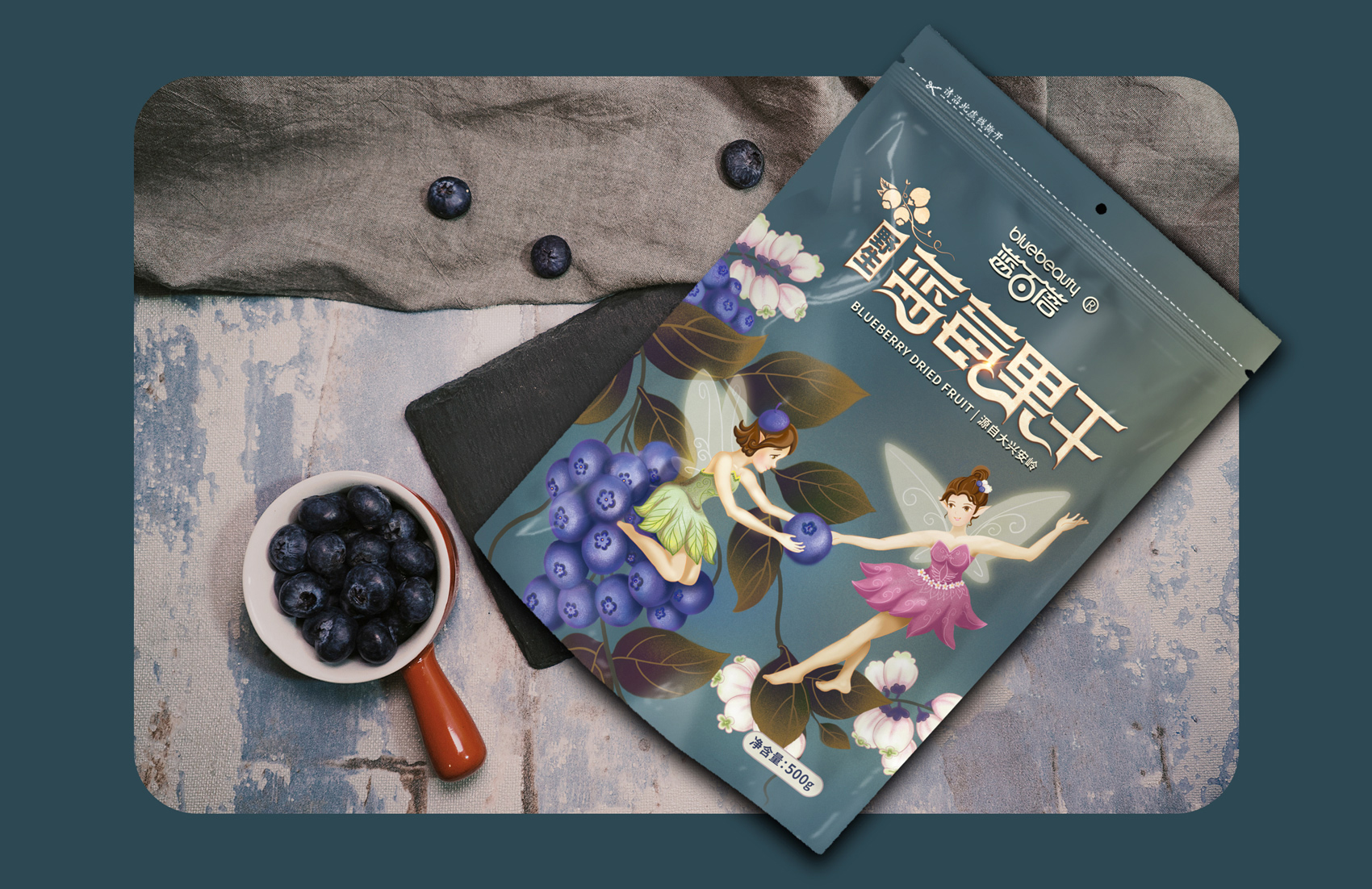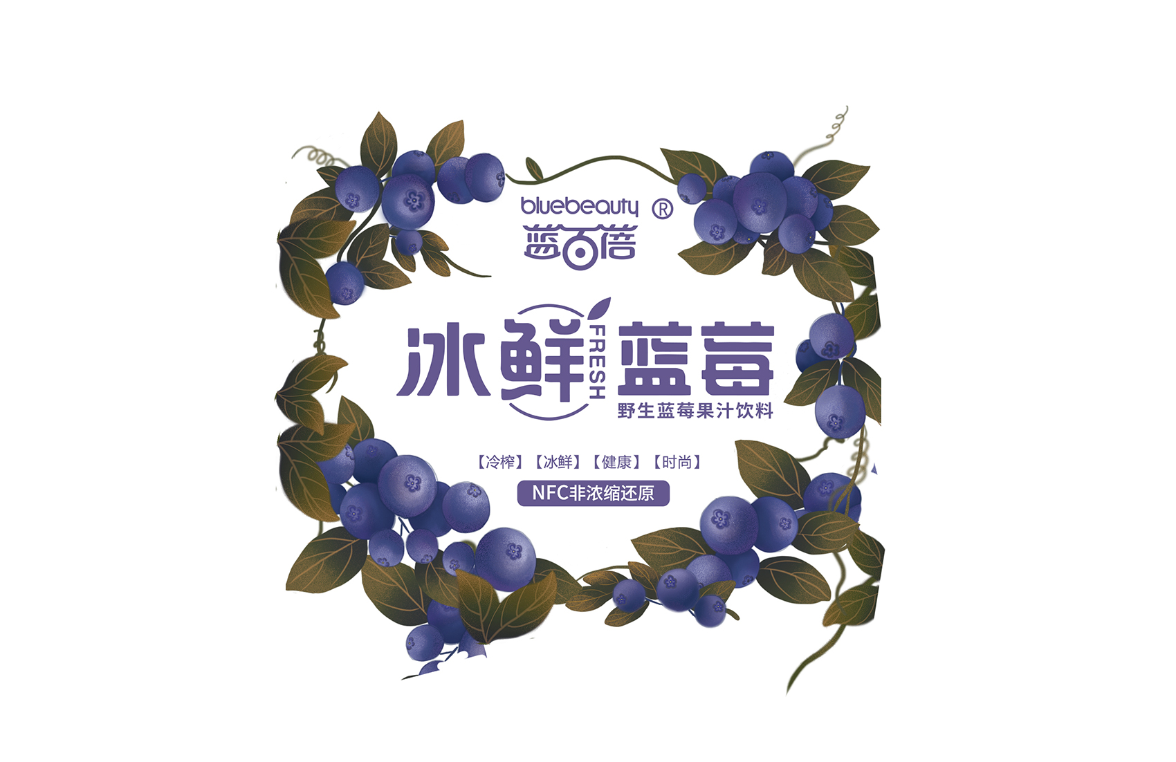 經(jīng)過繽策與企業(yè)方負(fù)責(zé)人的溝通及信息收集整理,產(chǎn)品定位主要以電商銷售為主,面向的群體也是年輕人士和熱愛藍(lán)莓的健康人士?;诶_策對市場的了解,制定出清新、簡約、特質(zhì)的包裝設(shè)計方案。配合主題的需要,副品字體也進(jìn)行了重新設(shè)計。以主題“藍(lán)莓仙子的愛”進(jìn)行創(chuàng)意插畫,并希望點亮消費者內(nèi)心喜愛的火焰。